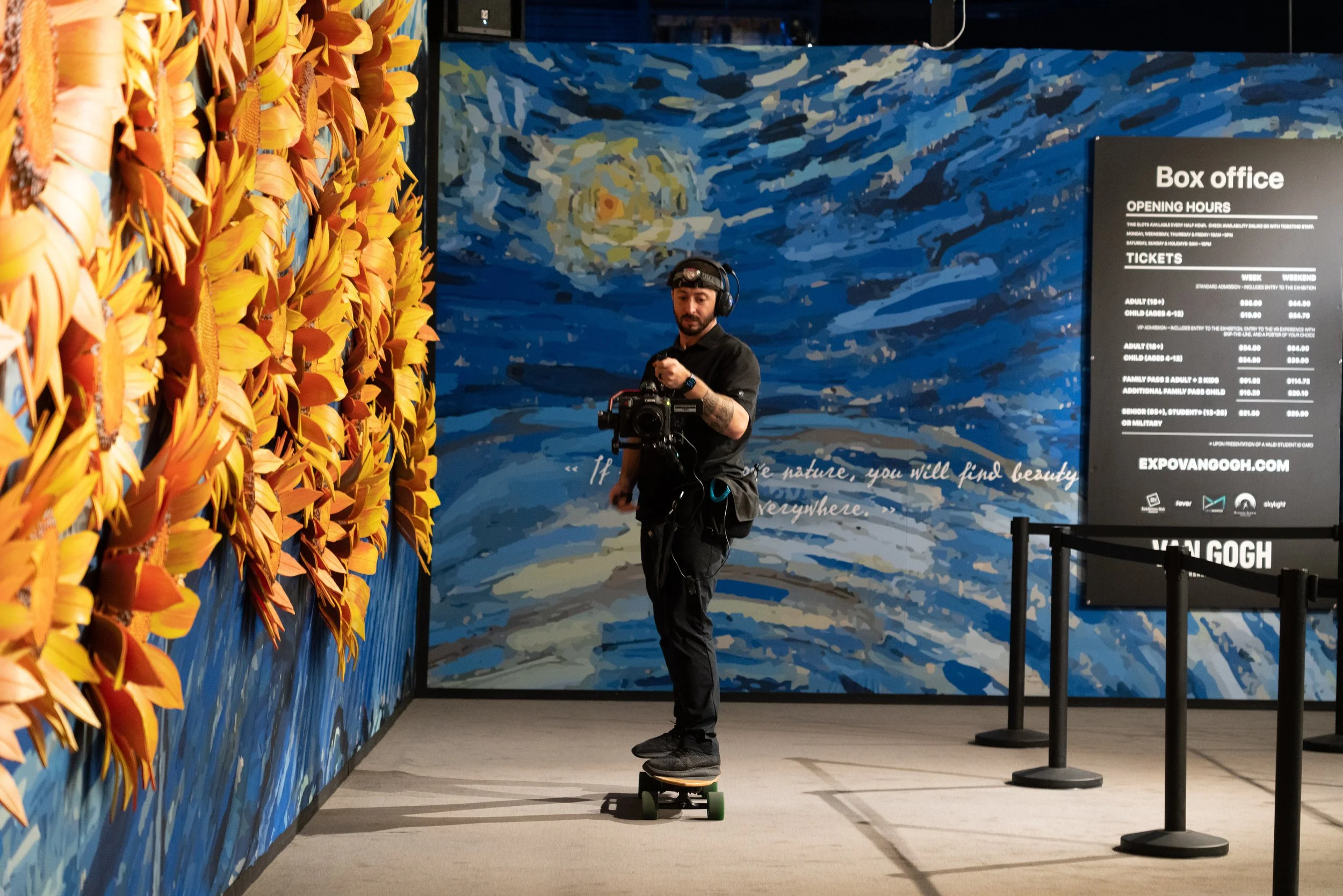 FPV flight throughout a design/craft facility. Because of the various actors, this shoot took a day of scouting, practice and choreography. Simpler shoots will require less prep work.